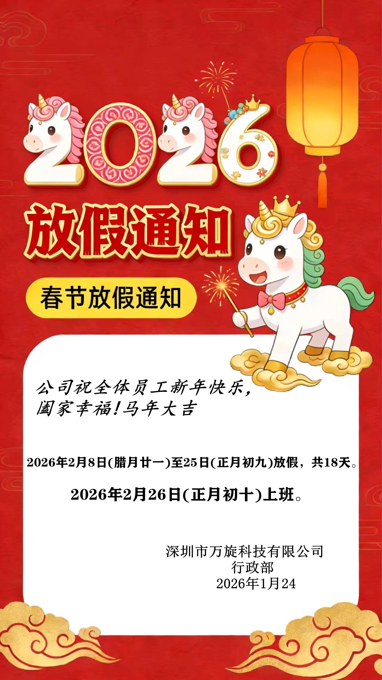 深圳市万旋科技有限公司 2026年春节放假安排如下: